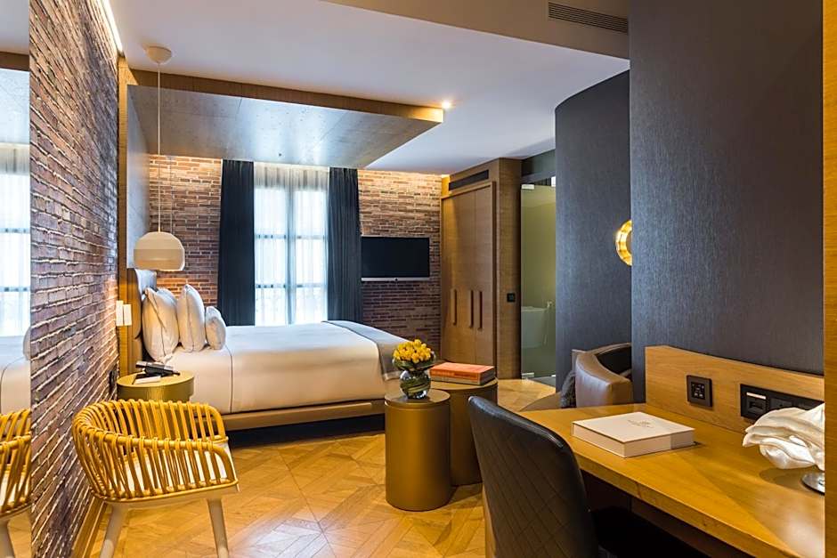 Decorated in an elegant style, this suite is located in the most historical and modernist part of the building. It includes a large bedroom and a separate lounge overlooking Paseo de Gracia Boulevard and the fashion boutiques. The bathroom is fitted with a shower and a roll top bath, a velour bathrobe and luxury toiletries. Some rooms have a small balcony.